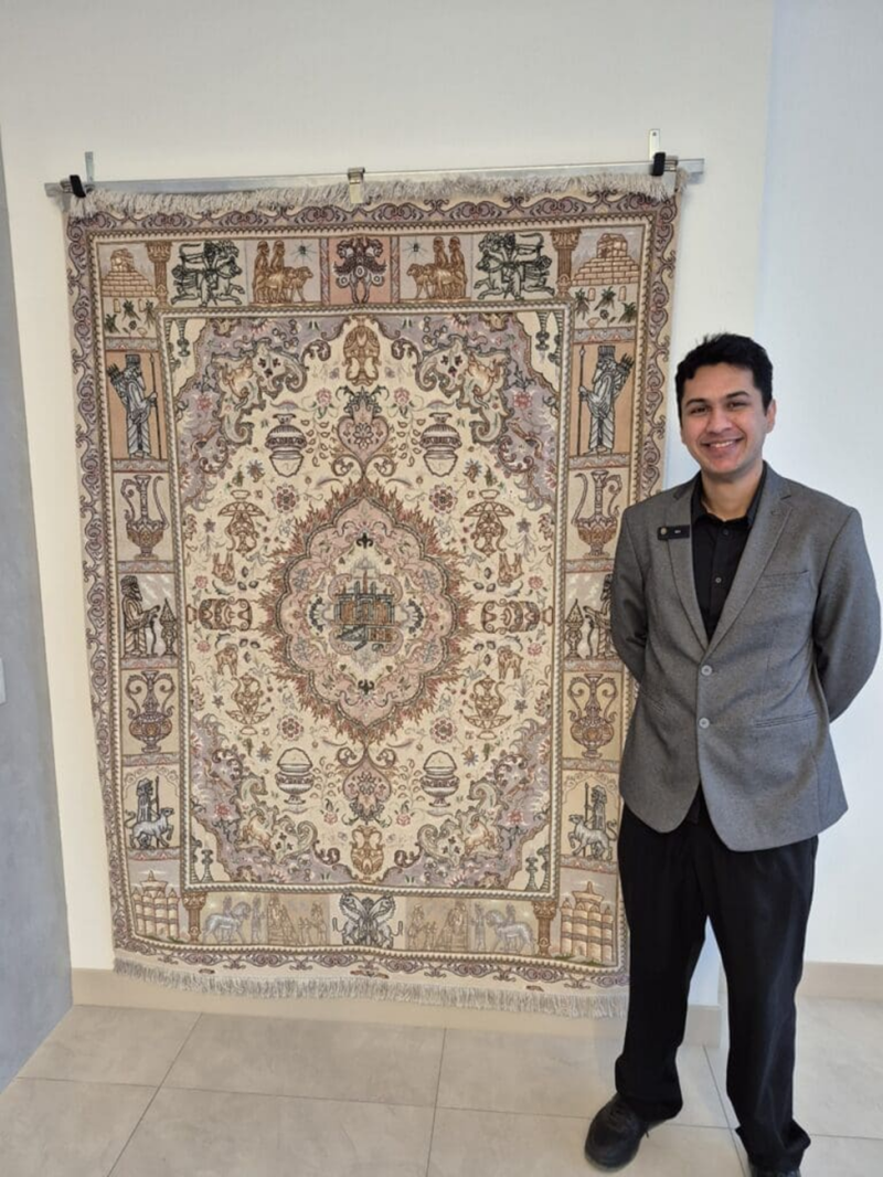Tour Guide Nev with one of the many Premium Persian Rugs